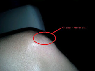 The "knob" is the dead tissue just hanging out on top of my knee. The pain is from the tendinitis. All ligaments are perfectly fine and ready to run. Two weeks off from intense training...